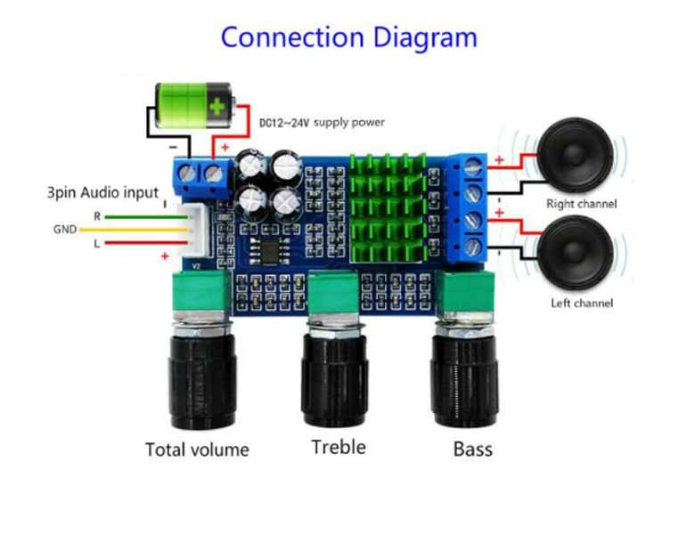 Con protección contra sobretensión, protección contra subtensión, protección contra sobrecalentamiento, protección contra cortocircuitos y detección de CC. Alimentado por CC 12-24 V, voltaje de entrada amplio. La potencia es lo suficientemente grande, excelente calidad de sonido, ideal para altavoces ajustables de bricolaje para satisfacer una variedad de experiencias audiovisuales públicas y hogareñas.