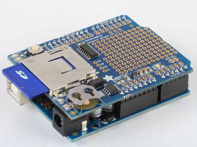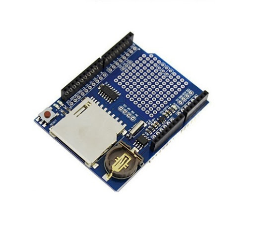 Esta tarjeta le brinda la capacidad a su Arduino UNO, leonardo, o MEGA almacenar datos en una tarjeta SD con una mínima configuración, el Shield incorpora un reloj en tiempo real (RTC) junto con la batería que le permite el registro de la fecha durante unos cuantos años. El Shield incorpora un lector SD que permite la lectura en formato FAT16 o FAT32 de memorias hasta de 32GB. La board tambien contiene un espacio para soldar sus componentes y contener su circuito en la misma tarjeta. El Shield tiene un conjunto de headers para Arduino que permiten apilar más Shields encima.