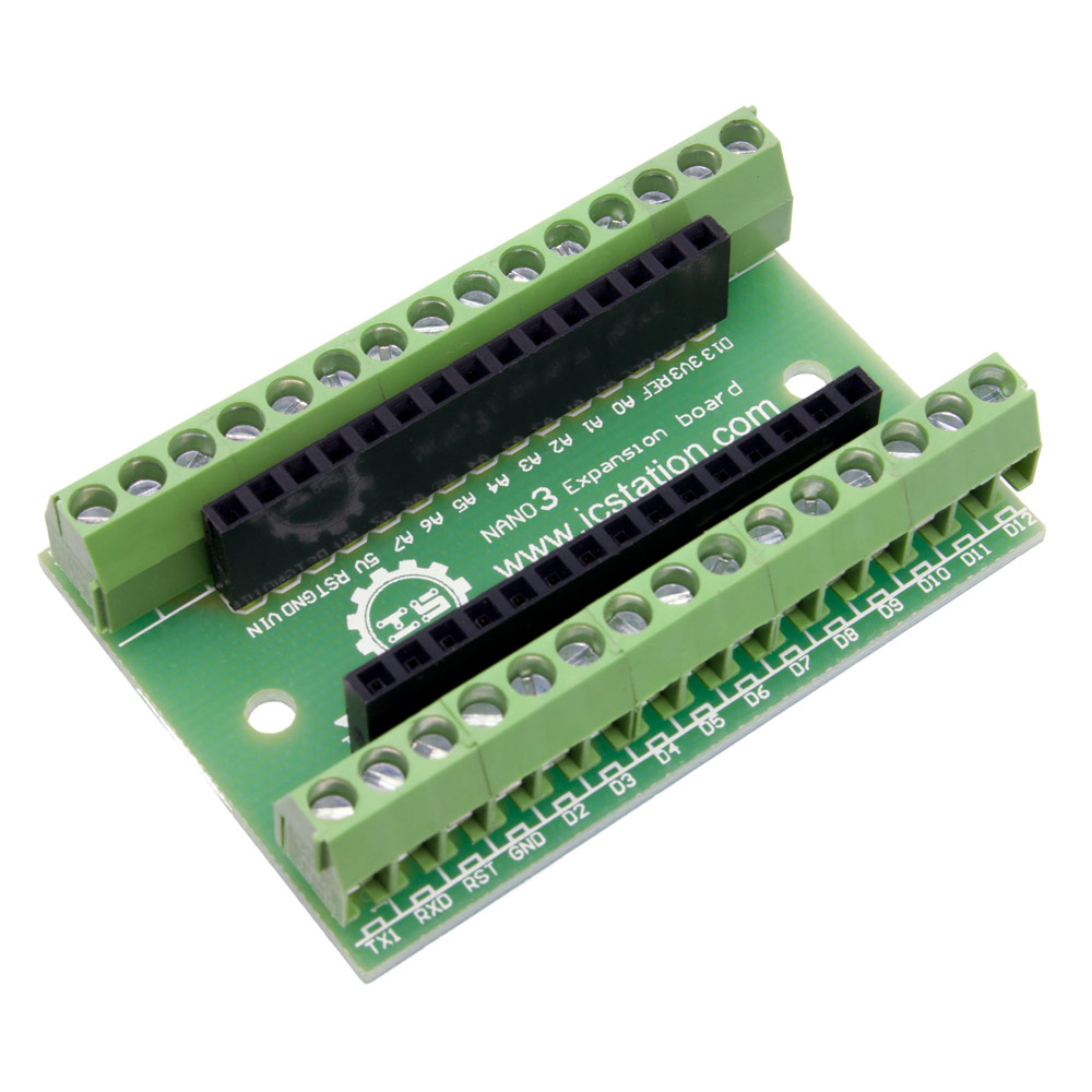 Puedes usar este adaptador para conectar fácilmente Arduino Nano a un mundo exterior a través de cables de conexión. Ideal para cosas temporales que no quieras soldar.
