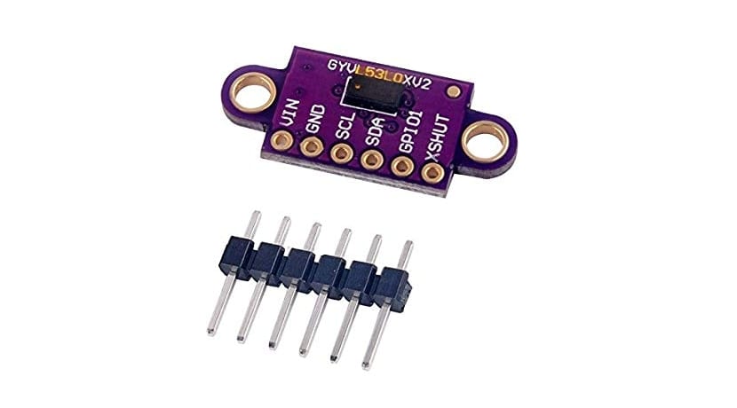 El Módulo VL53L0X es un sensor de distancia de nueva generación capaz de detectar el “tiempo de vuelo” y ofrece mediciones exactas sin importar la superficie reflectante, con un rango de alcance de hasta 2 metros. Este módulo posee un emisor laser que periódicamente emite un haz de luz, la cual es reflejada al encontrar algún obstáculo, el tiempo transcurrido entre la emisión y la detección del haz de luz, es medido por el sensor y de esta manera establece la distancia a la que se encuentra el objeto. Este dispositivo tiene una salida digital a través de un puerto I2C.