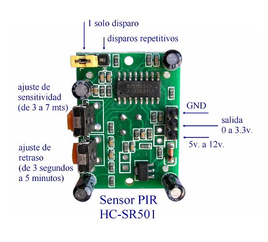 Este sensor Hc-sr501 detecta el movimiento de personas (o animales) que se encuentran hasta 7 metros de distancia mediante el uso de una lente de Fresnel y el elemento sensible al infrarrojo para detectar cambios en los patrones infrarrojos emitidos por los objetos en su cercanía. Es económico y fácil de usar, es ideal para sistemas de alarmas, iluminación activada por movimiento, proyectos educativos y accesorios de fiesta. El sensor Hc-sr501 es compatible con arduino y con todos los microcontroladores. Su distancia de detección es de menos de 2 metros, con la lente óptica, la distancia de detección puede ser mayor que 7 metros