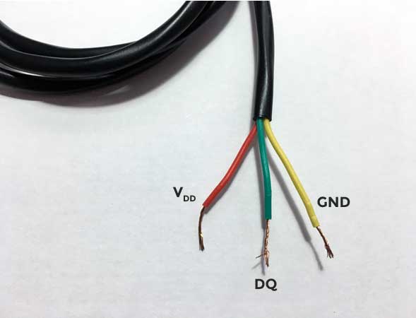 El sensor DS18B20 permite medir temperaturas de hasta 125ºC de forma fácil y además está sellado en un envoltorio estanco que permite sumergirlo en un líquido o pretegerlo de la intempérie. Dado que es un sensor digital, la señal leida no se degrada debido a la distancia del cableado. Puede funcionar en modo 1-Wire con una precisión de ±0.5°C con una resolución de 12 bits. También pueden utilizarse varios sensores sobre el mismo pin ya que internamente viene programado con un ID único de 64 bits para diferenciarlos. El rango de funcionamiento es de 3 a 5V por lo que se puede utilizar en practicamente cualquier sistema de que use microcontroladores. Características del cable En función de la producción, los cables del sensor pueden variar pero seguirán según estas especificaciones: Si tienes 4 cables: Rojo es Vcc (positivo), Negro es GND (negativo) y Blanco es el cable de datos. La malla es GND. Si tienes 3 cables: Rojo es Vcc (positivo), Azul/Negro es GND (negativo) y Amarillo/Blanco es el cable de datos. Características del sensor DS18B20