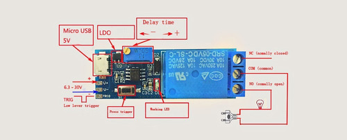 Demora: 0 – 24 Segundos, se ajusta por Medio del potenciometro. ¿ Se puede energizar por medio del plug micro usb.